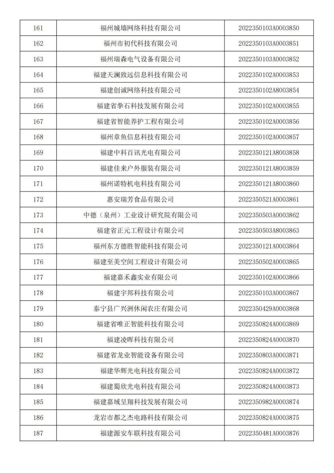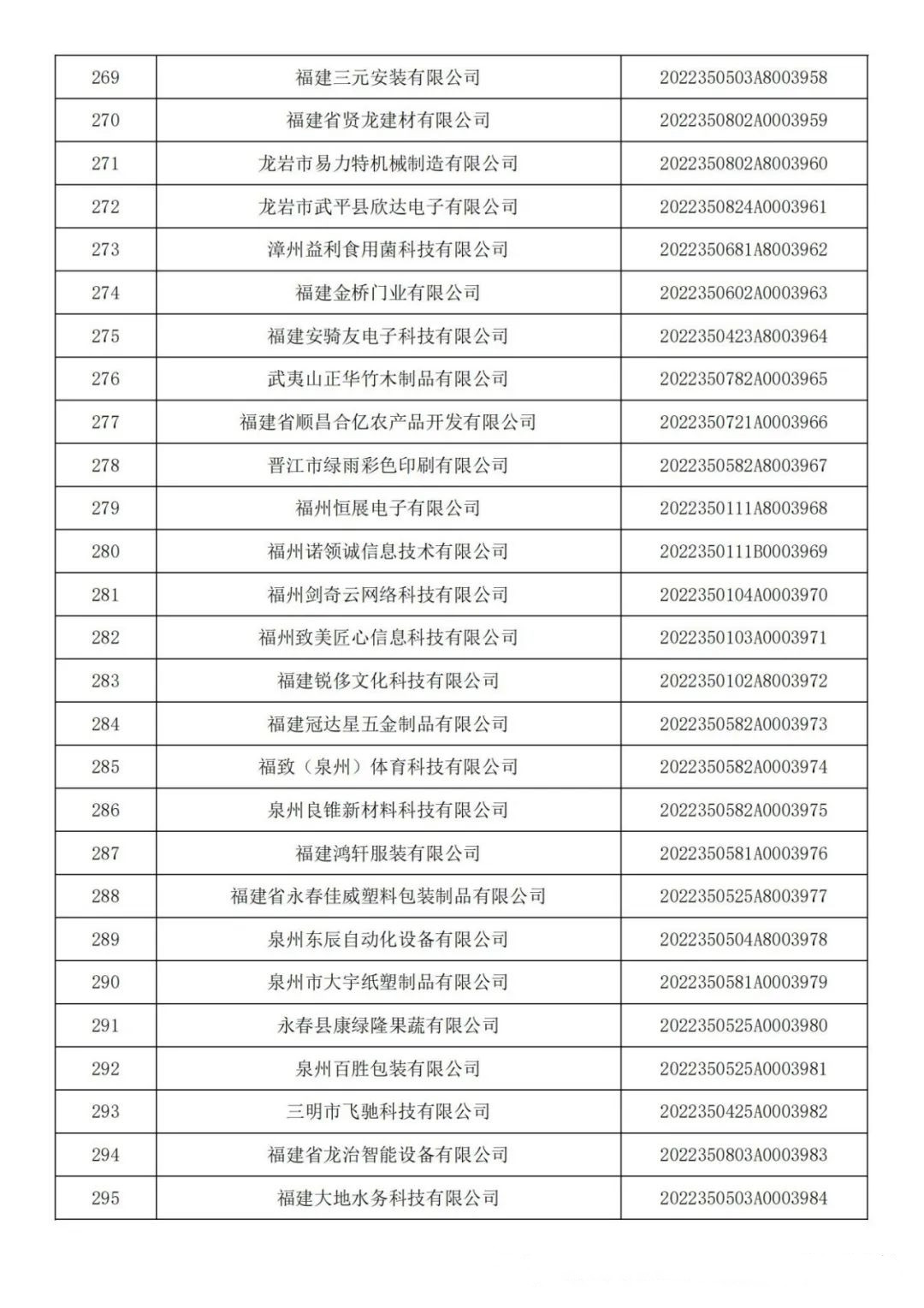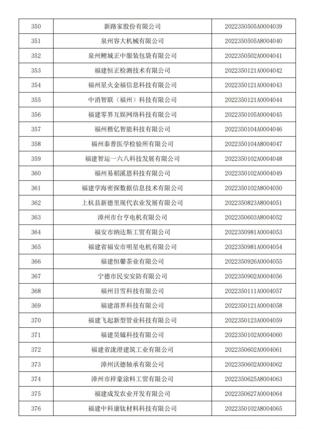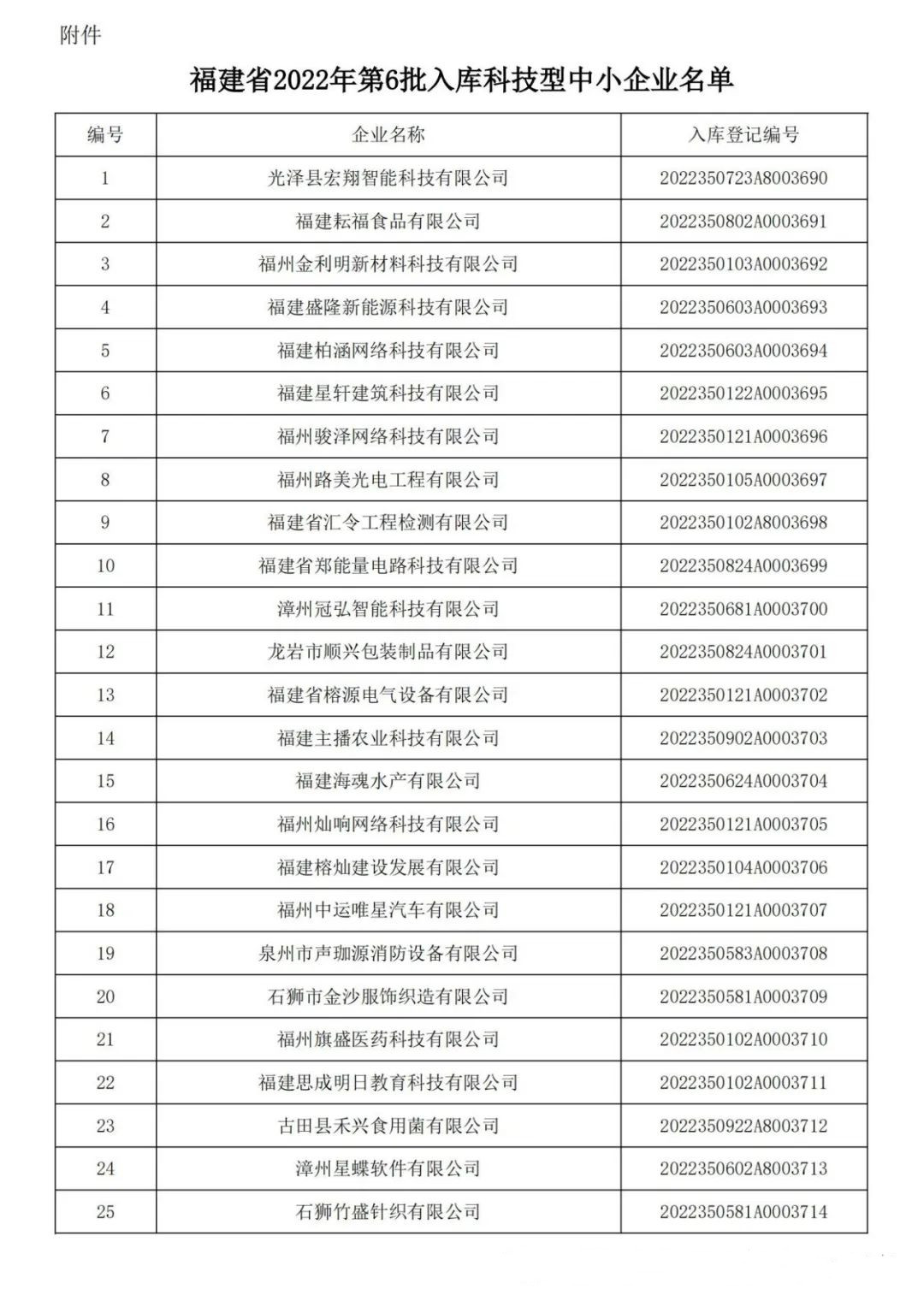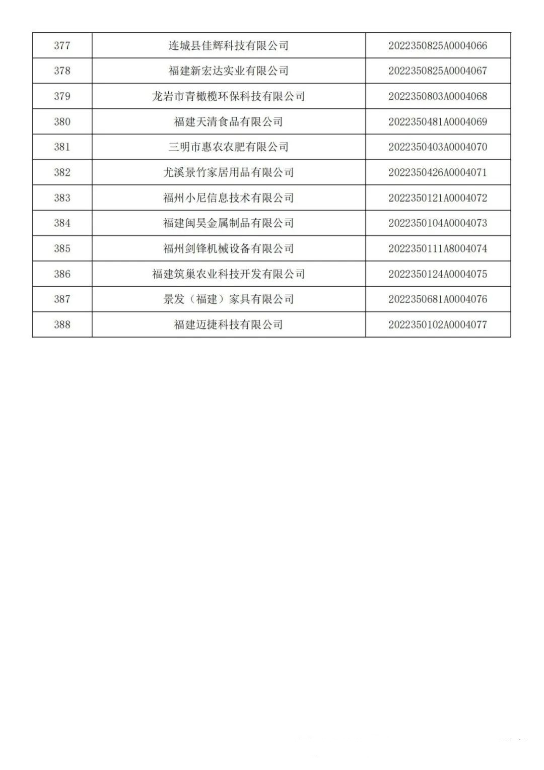 各有關(guān)單位: 根據(jù)《科技型中小企業(yè)評價辦法》(國科發(fā)政〔2017〕115號)和《科技型中小企業(yè)評價服務(wù)工作指引》(國科火字〔2022〕67號)要求,經(jīng)公示通過,現(xiàn)將福建省2022年第六批入庫的388家科技型中小企業(yè)名單(詳見附件)予以公告。 附件:福建省2022年第6批入庫科技型中小企業(yè)名單